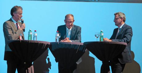 Zum ersten Mal trafen die beiden obersten Chefs von Migros und Coop an einem Talk aufeinander. Herbert Bolliger und Joos Sutter diskutierten unter der Leitung von Reto Brennwald an der GfK Handelstagung über die Zukunft des Schweizer Detailhandels.